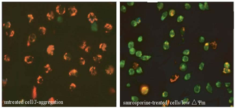 JC-1 是一種廣泛用于檢測線粒體膜電位△Ψm 的理想熒光探針??梢詸z測細胞、組織或純化的線粒體膜電位