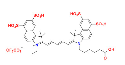 Cy5.5酸(Cy5.5)已用于標記生物分子,用于熒光成像和其他基于熒光的生化分析。它們廣泛用于標記肽,蛋白質(zhì)和寡核苷酸等。Cy5.5?染料是最常見的紅色熒光團中的一種。